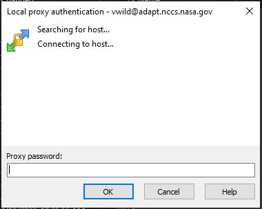 Then, the pop up window box will ask for your “proxy password” which is your RSA Tokencode. Finally, you will see a Password prompt for your NCCS LDAP Password.